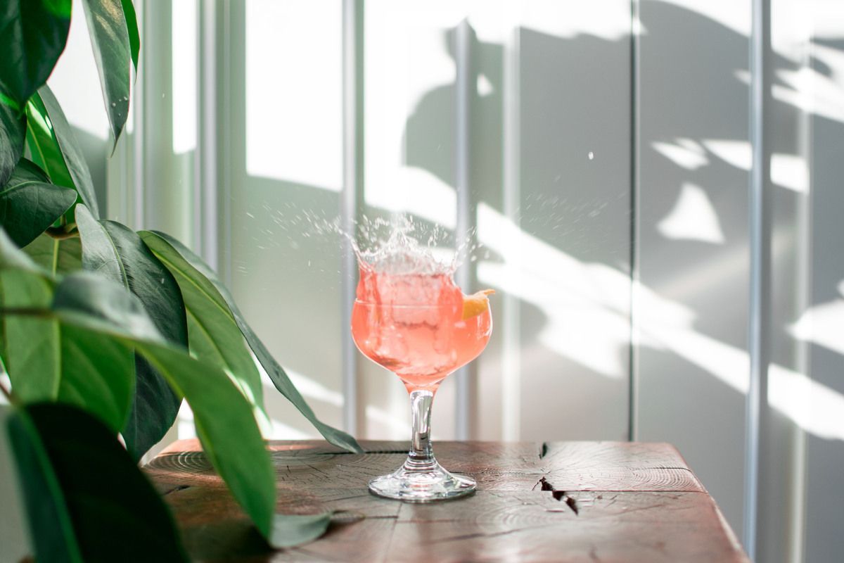 Gin, rhubarb gin, lemon, sugar, plum bitters, prosecco