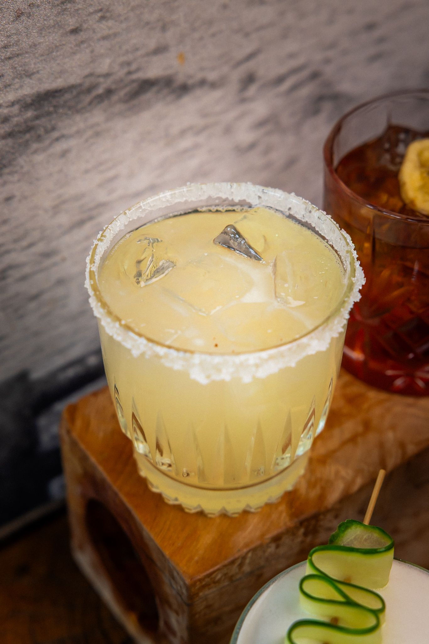 Tequila, mezcal, agave, cucumber, mint, egg white