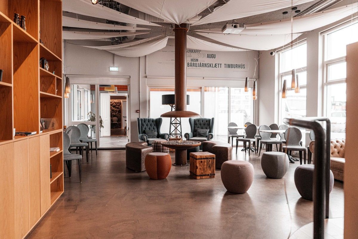Viðburður í alrými og gestamóttöku Reykjavík Marina vekur jafnan lukku gesta sem og gestgjafa en aðstaðan er með eindæmum skemmtileg. Ekki er um hefðbundinn fundar- eða veislusal að ræða heldur fallegt og skemmtilega hannað rými gestamóttöku hótelsins. Sófar, pullur, stólar og púðar veita þægindin og skemmtilega innréttað rýmið með íslenskri hönnun og ýmsum áhugaverðum gömlum íslenskum munum vekja jafnan athygli og aðdáun gesta. Arineldurinn setur svo punktinn yfir i-ið.